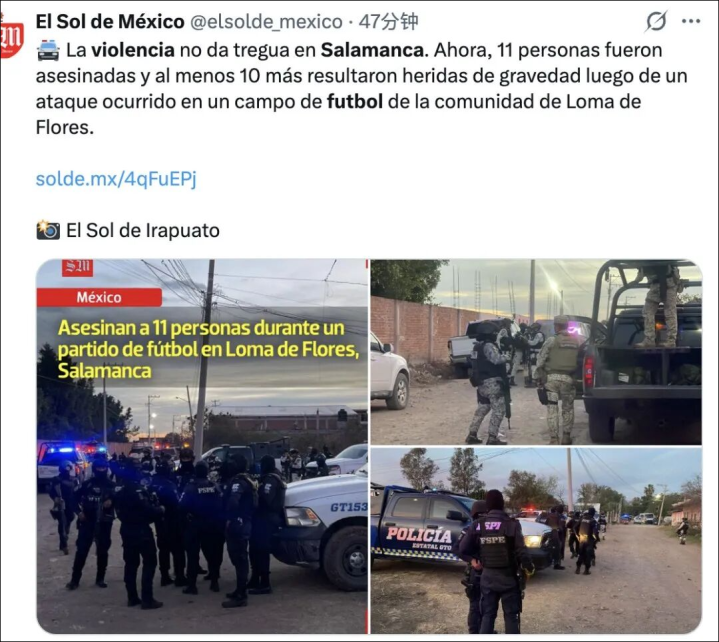 官方通报默示:"萨拉曼卡市政府热烈斥责近日在该市及该州发生的事件,包括本周日下昼在弗洛雷斯山社区发生的事件。事发时东说念主们正集中在一个足球场。"