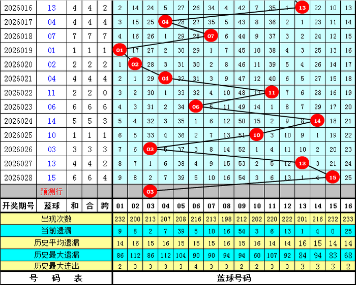 红球周二走势分析(天职析只侧重周二奖号,不触及周日和周四出号):