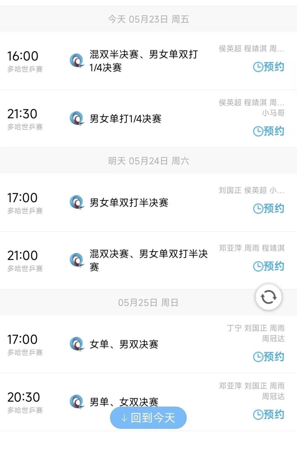 混双半决赛比赛手艺,5月23日16:00,王楚钦孙颖莎联袂出战,央视CCTV5直播。